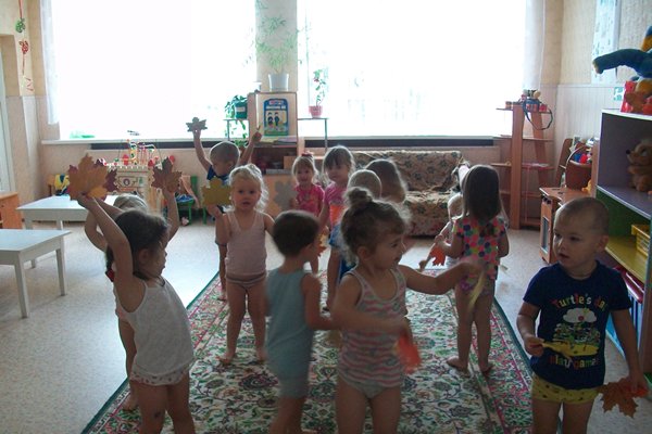 Играли в подвижные игры такие как: «Баба сеяла горох», «Листья летят», "Солнышко и дождик". "Горелки", «Раз, два, три – названный лист бери!», «Перелет птиц», «У медведя во бору». На празднике «Осенняя дискотека» дети старались вернуть яркие краски Осени, которые Кикимора унесла с собой. Дети пытались вернуть краски осени: пели, танцевали, играли, итолькокогда королева Красок помогладетям нарисовать, то осенние краски вернулись на праздник и Осень стала разноцветной.