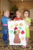 Читали стихи Пушкина, Плещеева, Толстого, Маршака, рассматривали картины об осени. Cинтересом играли в дидактическую игру «Какое время года»: по стихотворениям малыши узнавали сезонные изменения в природе и находили их на картинках, собирали из частей целые картины времен года, овощей и т.д. . В игре «Чудесный мешочек» дети на ощупь узнавали, называли и рассказывали об овощах и фруктах. В познавательной игре вспомнили о том, какие изменения происходят в природе с наступлением осени и как готовятся к зиме дикие животные. По мнемотаблице составляли рассказ об осени. В изобразительной деятельности – разноцветным пластилином лепили осенние листочки и украшали осеннее дерево. С интересом украшали «Косынку для осени» аппликацией из геометрических фигур. На праздничном утреннике играли, читали стихи об осени, весело танцевали «грибочки», пели «мухоморчики», девочки исполняли танец с зонтиками.