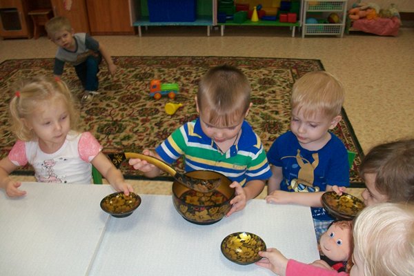 Дети младшей группы познакомились с понятием «родина», узнали о том, что страна, в которой они живут, называется Россия, что она очень большая и очень красивая. В развивающих ситуацияхдети знакомились сживотным и растительным миром наших лесов, узнали о том, что в России по особенному относятся к дереву – березе, что она является символом России, а поэты и художники в своих произведениях сравнивают красоту дерева с красотой русской девушки. С помощью методики «Расскажи стихи руками» ребята разучили стихотворение «Береза» И. Семенова, а затем в изобразительной деятельности с удовольствием наряжали березку в осенний, золотистый плащ. С помощью фотографий ребята совершили маленькое путешествие по главному городу нашей страны – Москве. Рассматривая фотографии с достопримечательностями родного поселка, дети с удовольствием узнавали и называли знакомые места (площадь в центре поселка с фонтанами, храм, наш детский сад), в ситуативной беседе рассказывали о том, где они бывали с родителями. Большой интерес у детей вызвало рассматривание игрушек, посуды, выполненных мастерами – умельцами из Хохломы и Дымково, а игра с матрешкой -всегда любимое занятие для детей. Дети с удовольствием смотрели, вспоминали и рассказывали знакомые русские народные сказки, играли в русские народные подвижные игры («У медведя во бору», «Наседка и цыплята», «Кот и мыши» и др.), а также, знакомились с играми других народов. Наши ребята были активными участниками конкурса чтецов и праздника «День народного единства».