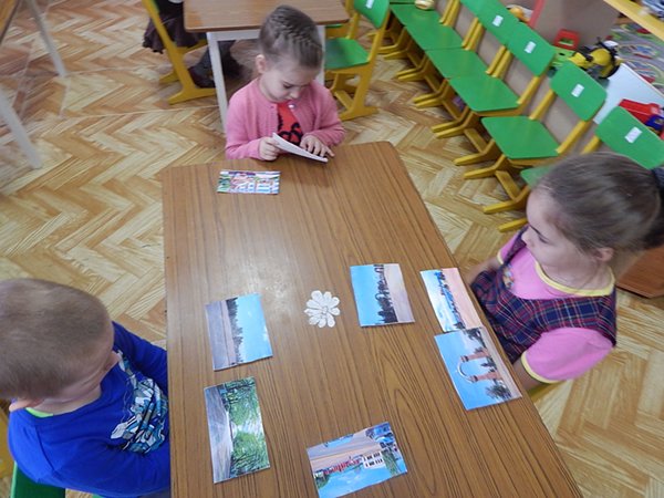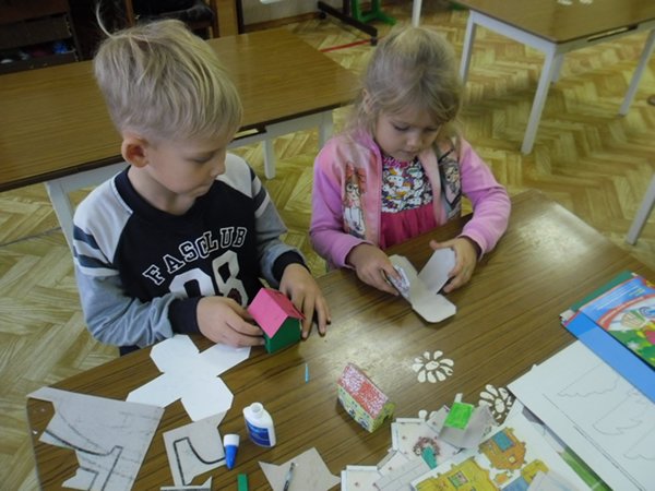 Дети с интересом рассматривали фотографиинашего поселка, узнавали и называли учреждения, достопримечательности Анны. В игре «Где живешь?» - называли свою улицу. Строили дома из конструкторов, из счетных палочек. На занятии по аппликации «Мой дом» наклеивали домики, вырезали крыши, окна, двери из прямоугольников и квадратов. Читали стихи А.Прокофьева о березе, рассматривали картинки. В игре «Чей листочек?» - узнавали и называли листочки, деревья. Рассматривали Российский флаг, называли цвета. В играх«Чей домик?» - называли жилища и домашних животных, «У кого кто?» - узнавали детенышей, собирали картинки семьи домашних животных. Читали стихотворение А.Шибаева «Кто кем становится»- в кого превращаются маленькие животные.