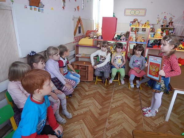 В развивающих беседах о нашей огромной стране России, о ее необъятных просторах и границах, о ее разнообразной природе, богатстве и красоте, детьми было усвоено такое понятие как «Россия – великая страна!». Что если на одном конце нашей страны день, то на другом уже ночь. Что на севере нашей страны вечная мерзлота, а на юге тепло, и практически нет зимы. Дети так же узнали, что Россия – многонациональное государство,что все мы должны жить дружно, потому что у нас одна страна.