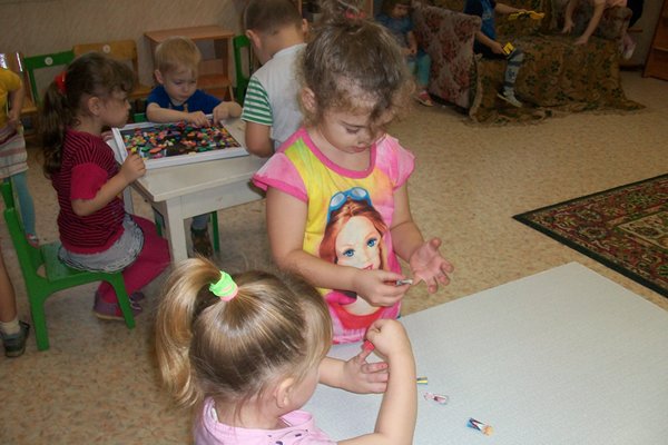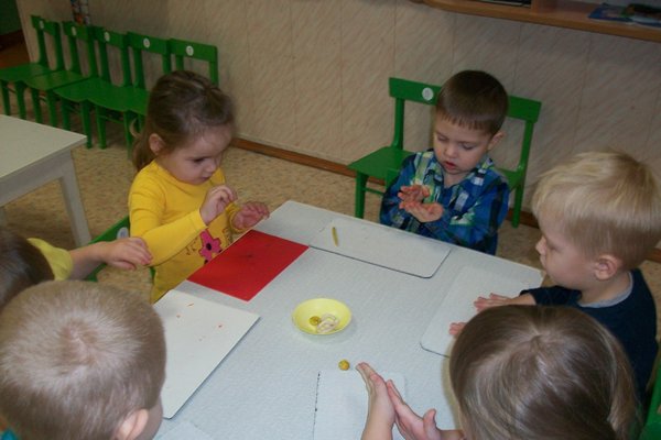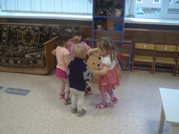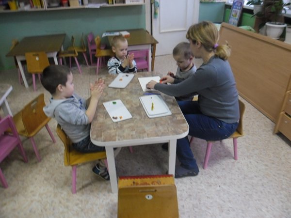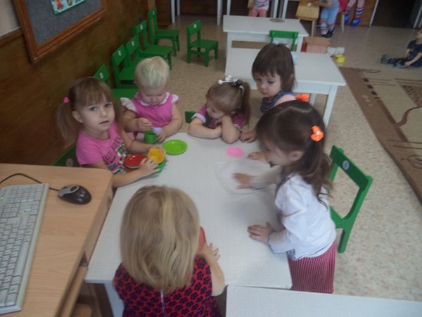Главным на протяжении всего тематического модуля было стимулирование и поддержка речевой активности детей. Малыши с удовольствием рассматривали семейные альбомы с фотографиями, называли и рассказывали о своих родственниках, о том, где они бывали с родителями, к кому из родных ездили в гости. В игровой ситуации «Поможем маме» ребята пробовали помочь маме «сварить» борщ, закрепляя при этом название овощей и употребляя в речи обобщенное понятие «овощи», а также, разучили стихотворение «Мамины помощники», используя методику «Расскажи стихи руками». Рассматривали сюжетные картинки о маме, учились составлять небольшой рассказ. Дети самостоятельно играли в пальчиковые и настольные игры: «Семья», «Дружные пальчики», девочки организовали сюжетно – ролевую игру «Дочки- матери». После ситуативной беседы на тему «Мой дом», малыши строили домики из конструктора, счетных палочек, цветных палочек Кюизенера. Из художественного произведения Воронковой «Маша – растеряша» дети узнали, как важно быть самостоятельными (убирать на место свою одежду), тем самым помогая своей любимой мамочке. Ребята с большим старанием и увлечением раскрашивали рамку для семейных фотографий, лепили угощения для мам и пап, изготавливали (с помощью педагога) подарки мамам к празднику «День матери». На неделе психологии каждое утро дети обращались к радуге настроений, выбирая цвет по душе, что способствовало хорошему психологическому, эмоциональному настрою детей. В различных видах детской деятельности педагоги старались создавать условия для развития дружеских отношений между детьми, умения играть вместе, помогать друг другу.