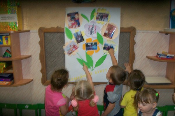 Домовенок Кузя был главным героем,которому дети рассказывали о своей семье, о традициях и семейных праздниках. Все вместе рассматривали семейные фотографии, выясняли кто, кому и кем приходится, даже доказывали, какую роль имеет семья в жизни каждого человека. Дети с интересом участвовали в опросе и оформлении стенгазеты: «Семья – это…!». С удовольствием и искренностью выражали свои пожелания в плакате «Я желаю своим родителям…». Произведения детской литературы, а именно, рассказы: В. Сухомлинский «Крылья матери», С. Махотин «Воскресенье», А.К. Вестин «Мама, папа, восемь детей и грузовик», помогали детям осознать, какую важную роль играет семья в жизни каждого человека.