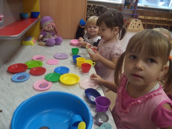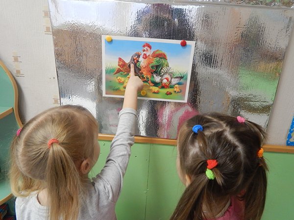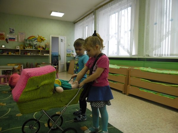 Рассматривая картинки с семьями животных, закрепляли названияих детенышей и мам. Читали стихотворение «Моя мама», сказку «Волк и семеро козлят». Беседовали с детьми о том, чем занимается каждый член семьи и играли в игру «Кому, что нужно для работы». Дети активно принимали участие в подвижных играх «По ровненькой дорожке», «Вышла курочка гулять» и сюжетно – ролевой игре «Семья».