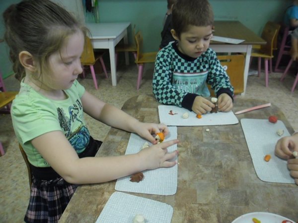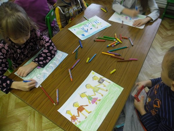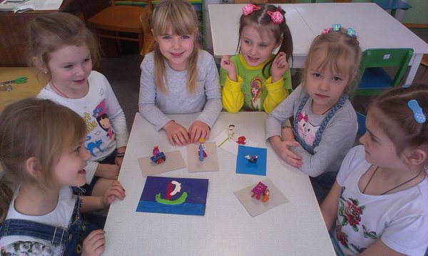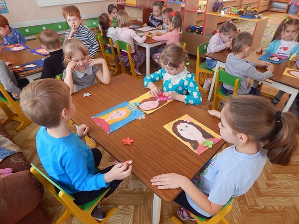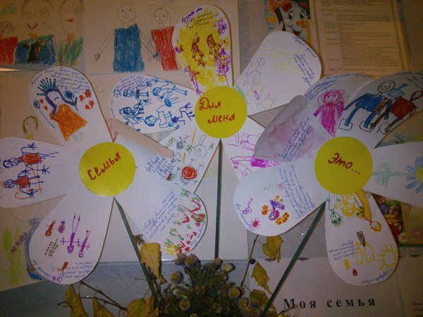 Дети с удовольствием и увлечением принимали в участие играх: «Птички и кошка», «Подбери пару», «Учимся говорить комплименты», «Назови ласково», «Передай улыбку по кругу». Самыми интересными и запоминающимися, стали ролевые игры: в семью: мам и пап, дочек и сыновей. Свою семью дети отразили в рисунках. С трепетной нежностью рисовали портреты мам, изготавливали рамочки для фотографий, помогали оформлять стенгазеты. Для домовенка Кузи сделали подарок: посуду и мебель из пластилина.