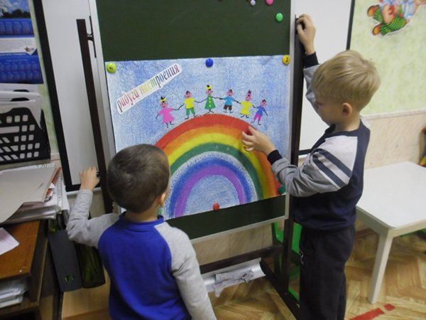 Подвижные и развивающие игры способствовали сплочению детского коллектива, обучению навыкам коллективной самоорганизации, умению вести диалог, делать комплименты товарищу, поднятию настроения детей. «Радуга настроения» помогла проследить динамику настроения детей в течение дня.