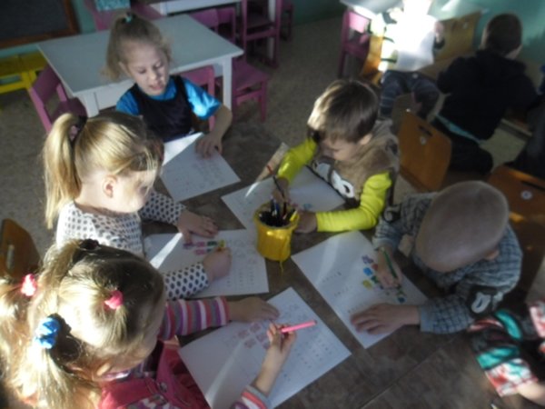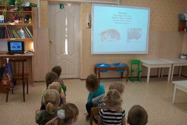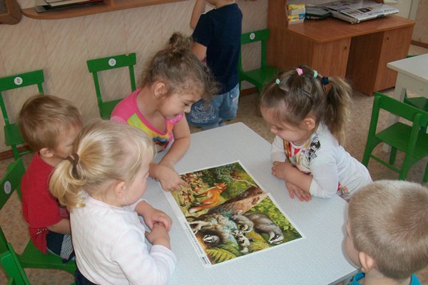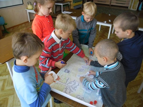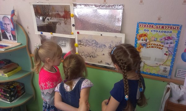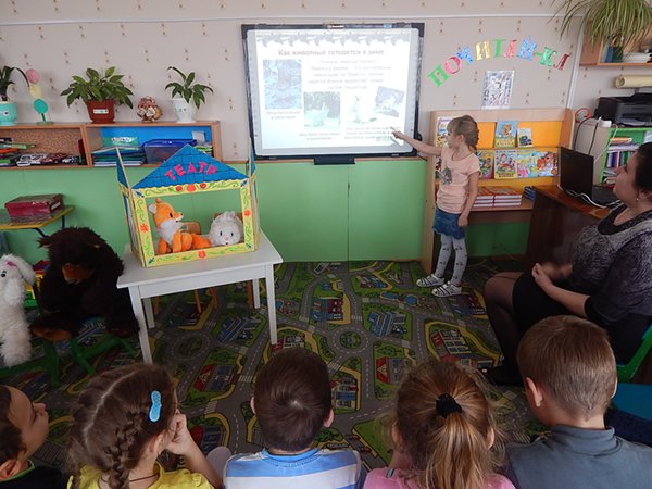 В рамках тематического модуля «Мир вокруг нас» дети разновозрастной группы №1 познакомились с первыми признаками зимы (идет снег, лужи замерзли и превратились в лед, люди стали надевать теплые вещи). Также в процессе организованной образовательной деятельности «Путешествие в лес» дети по следам разгадывали животных, а затем узнавали о том, как эти звери готовятся к зиме.