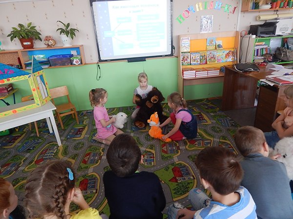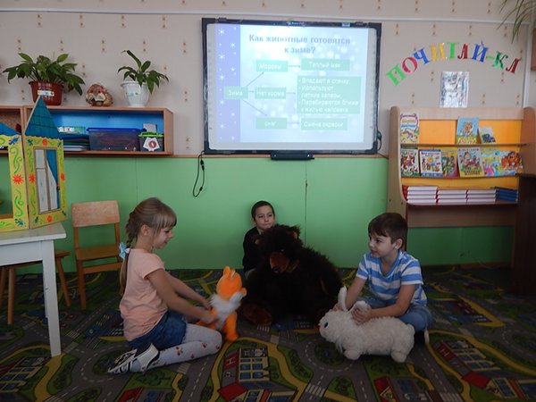 В рамках тематического модуля «Мир вокруг нас» с детьми были проведены различные беседы, игры, мероприятия, которые принесли детям много познавательного и интересного. Прилетела снежинка, с которой дети путешествовали в зимний лес, беседовали о том, что наступила зима, работали в уголке исследовательской деятельности, где дети наблюдали за снегом, познакомились с его свойствами. Проговаривали скороговорку: «Зимой поле белое, промёрзло - заледенелое». Просматривали презентацию на тему «Растительный мир родного края», беседовали о том, «Как растения готовятся к зиме». Слушали сказку Одоевского «Мороз Иванович». По следам животных определяли, каким животным они принадлежат. Д/Игра «Чьи следы?». Беседовали на тему « Как звери к зиме готовятся?». На прогулке наблюдали за собакой, пробегающей мимо. Отгадывали загадки. Играли в сюжетно - ролевую игру «Ветеринарная лечебница». Проводилась беседа с детьми на тему: «Как вы помогаете взрослым». Играли в сюжетно – ролевые игры «Профессии» по желанию детей.
