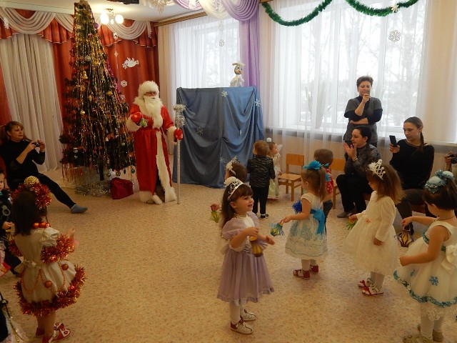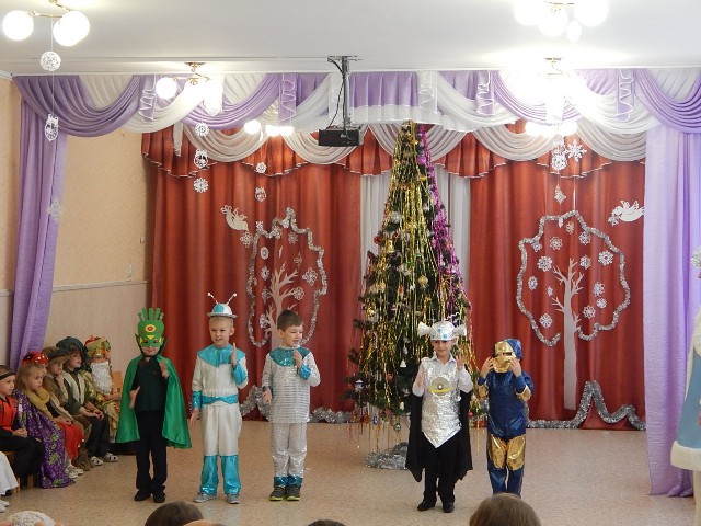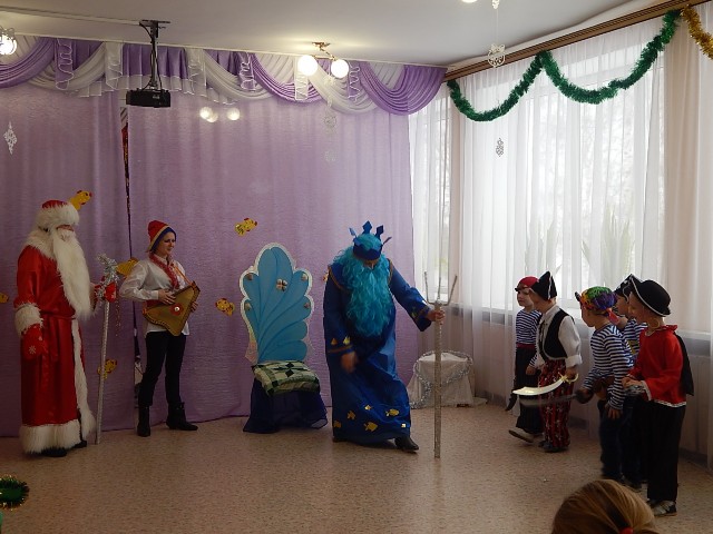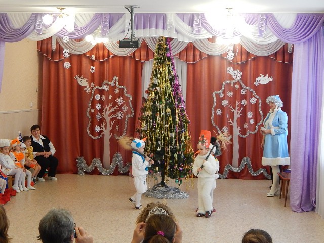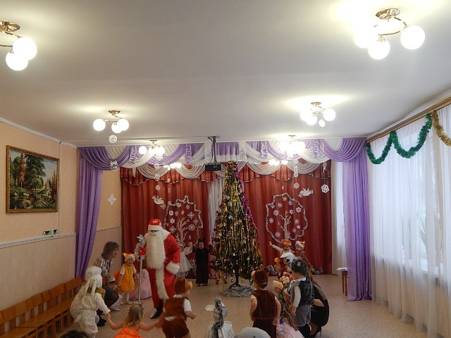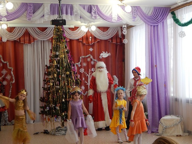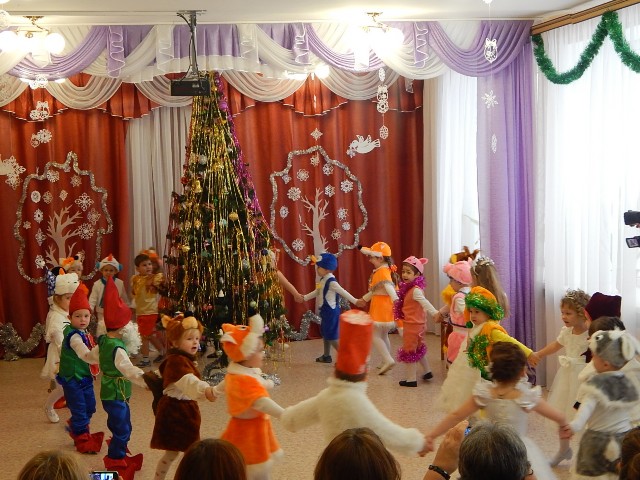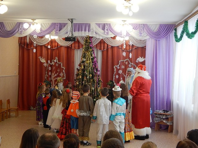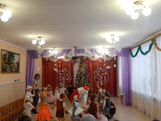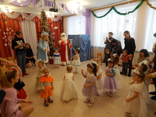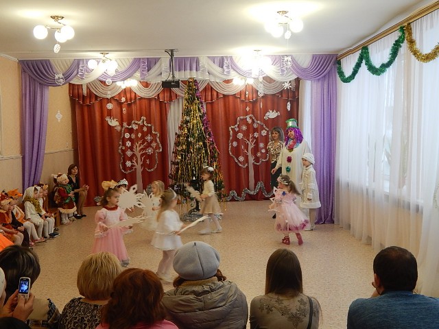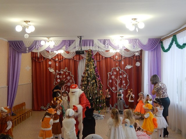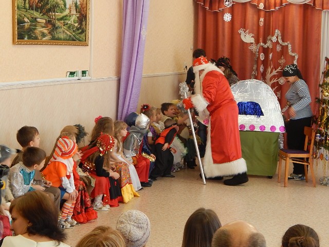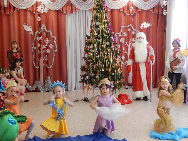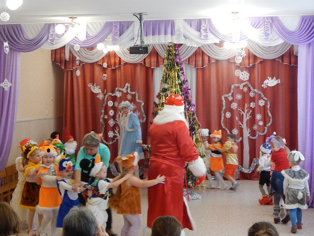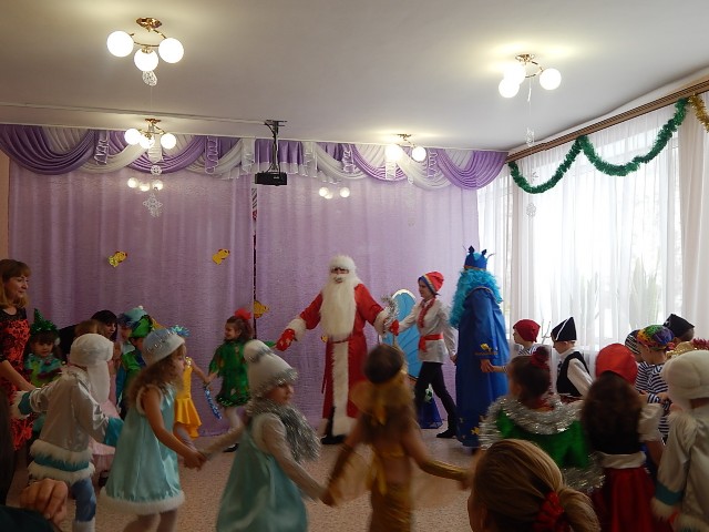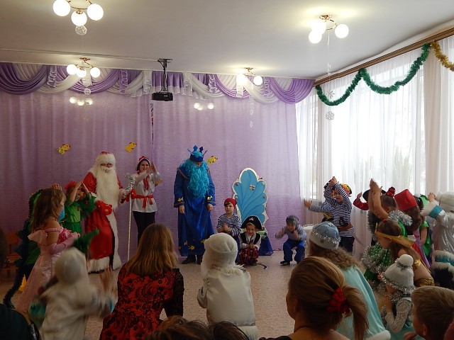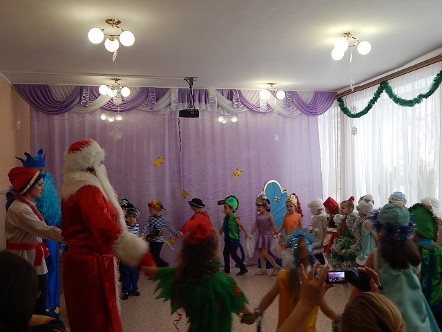 Новый год - всегда ожидание чуда, волшебных превращений, приключений и удивительных перемен. С 21 по 28 декабря в нашем детском саду проходили новогодние утренники. Нарядные, весёлые в предвкушении праздника дети радостно и весело встречали Дед Мороза и Снегурочку, которые оправдали их надежды и преподнесли долгожданные подарки. Педагоги, участвовавшие в новогоднем представлении, проявили себя замечательными артистами, показали всё своё творческое мастерство, задор и организаторские способности. Разные герои приходили к дошколятам: Дед Мороз, Снеговик, баба Яга, Подводный царь, Снегурочка, Бармалей и даже Избушка на курьих ножках. С самого начала представления сказочные герои увлекли детей в волшебный мир сказки. Дети смогли окунуться в праздничную атмосферу приключений, поучаствовать в интересных конкурсах.