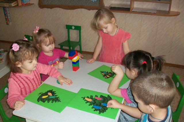 Детиузнали, что символом новогоднего праздника является ёлочка. В течение первой недели дети украшали бумажные ёлочкишариками из пластилина, играли в дидактическую игру «Такие разные елочки», где им нужно было выстроить ёлки по высоте от самой маленькой до самой большой. Конечно же, дети слушали стихотворения о ёлочке, о зиме, о новогодних приключениях зверей. Рассматривали иллюстрации к сказкам и смотрели мультфильмы про Новый год.