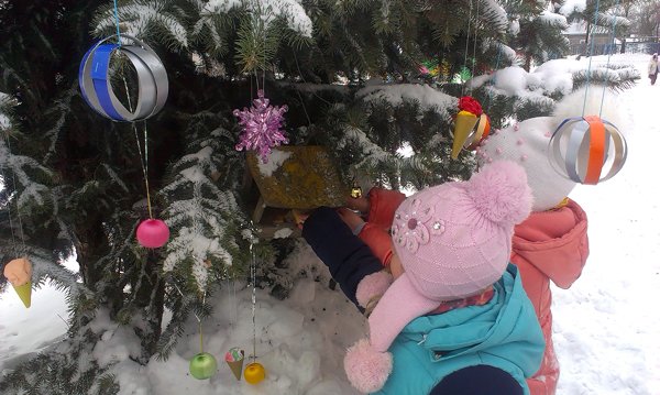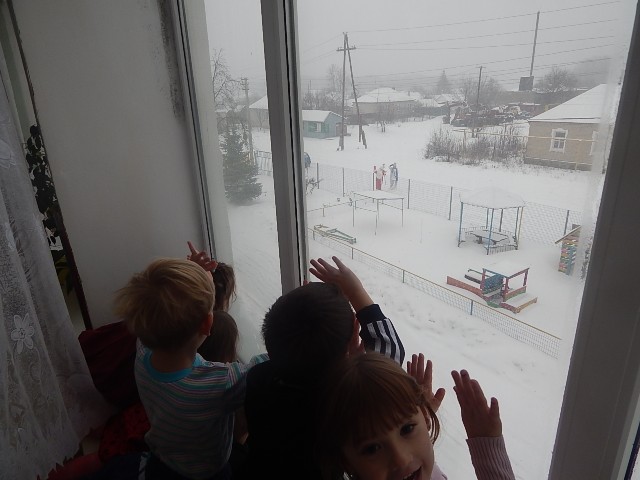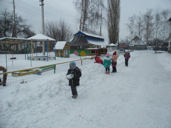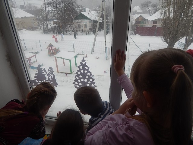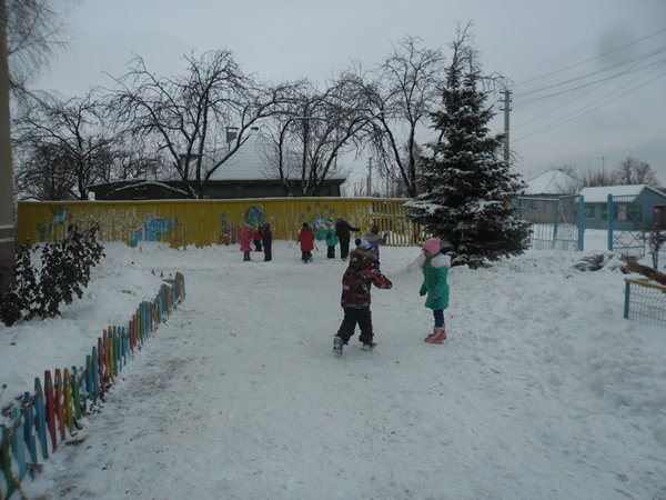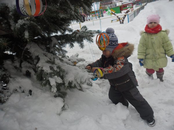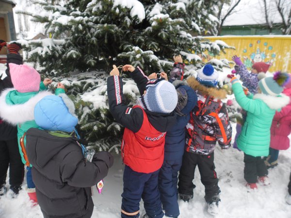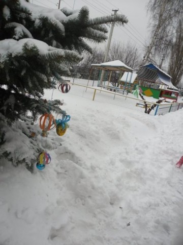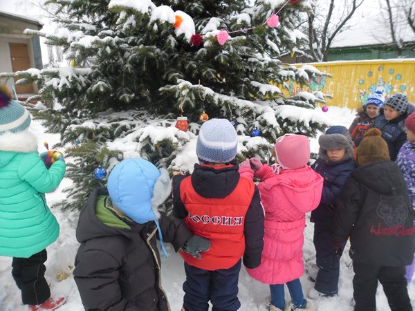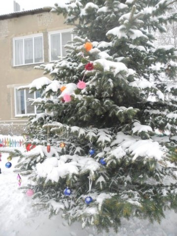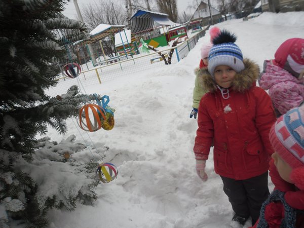 Как весело было наряжать ёлку во дворе детского сада! А затем играть в снежки. Сколько радости было у детей, когда мимо окон прошли Дед Мороз и Снеговик.