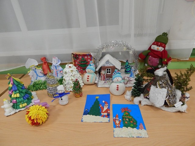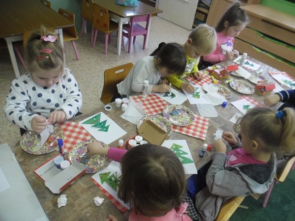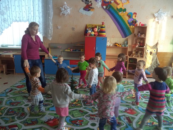Дети познакомились с новогодними традициями нашей страны, побывали в мастерской Деда Мороза, где помогли украсить елку для лесных зверушек ледяными красками. Каждый день детей ждал новогодний сюрприз – на елке в группе появлялись новые новогодние украшения. Малыши с удовольствием сами украшали елочку игрушками, сделанными своими руками (шариками, силуэтами зверушек). Ребята разучили новогодние стихотворения: «Елка» К. Чуковского, «Наша елка» О. Высотиной, составляли небольшие рассказы на новогоднюю тему по серии картинок. На полочке с дидактическими играми дети каждый день находили новые игры: «Новогодний лабиринт», «Что лишнее?», «Огоньки на елке», «Собери елочку», «Разрезные картинки», «Укрась елку игрушками разной формы» и т.д. Просмотр новогодних мультфильмов, зарядка под веселую новогоднюю мелодию, хороводы вокруг елки способствовали созданию новогоднего настроения и положительного эмоционального настроя у детей. Ребята получили элементарные знания о празднике Рождества, просмотрев мультфильм «Рождественская сказка».Затем вылепили из соленого теста рождественские угощения (пряники, печенья). Малыши с удовольствием раскрашивали новогодних героев. С помощью приема пластилинографии ребята самостоятельно вылепили елки и украсили их бусинками. Дети учились чередовать предметы по форме, «нанизывая» новогодние бусы на нитку (аппликация «Бусы на елку). Родители воспитанников были активными участниками конкурса «Новогодние снежинки», изготовили поделки для традиционной в нашем детском саду новогодней ярмарки.