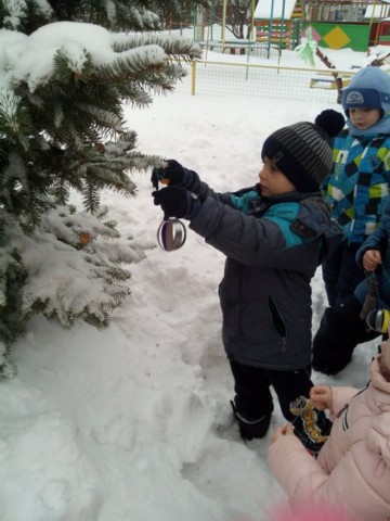 В познавательно-исследовательской деятельности дошколята приоткрыли тайны снега и льда, при изучении истории новогодней игрушки уточнили представления о свойствах стекла и пластмассы.