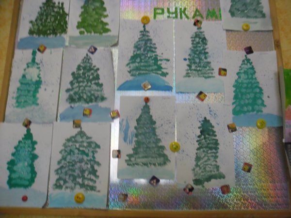 Дошколята с увлечением рассказывали о приметах зимы, на чем любят кататься, рассматривали и сравнивали ель и сосну, шишки этих деревьев, раскрашивали веточки.Делали объемную елочку, украшали шариками, рисовали «тычком».Отправлялись в путешествие со снеговиком к Деду Морозу, готовили подарки лесным жителям, украшали елочные игрушки для щенка, наряжали елку в группе. Рассматривали альбом «Русские народные игрушки». Читали и разучивали стихи про Новый год, пели песни. Делали елочные игрушки из бумаги и из теста,украшали елку на улице(на площадке). Родители вместе с детьми сделали елочные игрушки, снежинки, поделки с новогодней тематикой.