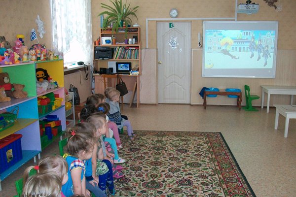 Дети продолжали знакомиться с понятиями «Родина, Армия, Военнослужащий». Мультимедийные презентации расширили представление детей о родах войск, вооружении Российской армии. Ребята с огромным интересом слушали стихи С. Баруздина «Шел по улице солдат», З.Александровой «Дозор» С. Маршака «Февраль», Т Агибаловой «Старший брат», В. Степанова «Наша Армия». Рассматривали иллюстрации к книгам об армии. Дети не только знакомились с защитниками родной земли, но и постигали важные понятия: честь, достоинство, уважение. Дидактические игры «Назови военную профессию», «К какому роду войск относится техника» и другие помогли закрепить названия техники и родов войск. Беседы и презентации о военной профессии связист, показали, как необходима связь для армии. Лепили, рисовали военную технику.