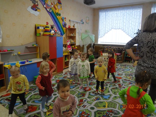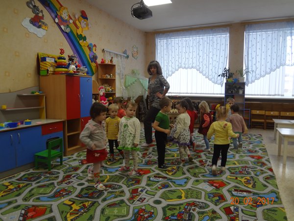 Малыши слушали военные песни, учились ходить, как солдаты, занимались физкультурой, играли в пальчиковые и подвижные игры «Аты – баты», «Самолеты, на посадку!»