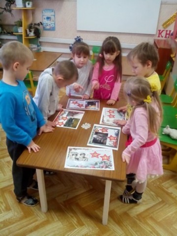 Вместе с детьми и их родителями оформили фотогазету «Мой папа был тоже когда – то хорошим и смелым солдатом». Ребята с гордостью рассматривали фотографии своих пап в военной форме.