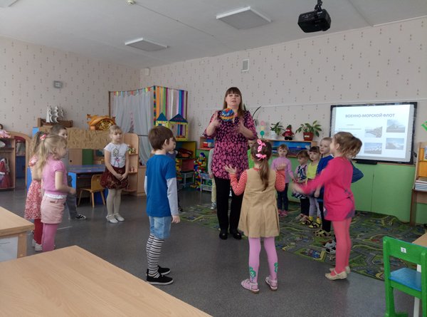 Хотелось более подробно рассказать о задании, которое было выдано для подготовительной группы.А именно, нашей группе предстояло стать моряками Военно – морского флота. Сначала мы окунулись в историю создания Российского флота. Просмотрели презентации и иллюстрации по данной теме. Затем, определили, какие профессии есть на морском судне. Какие принадлежности необходимы для моряков. Узнали, какие корабли служат на страже нашей Великой Державы. Сделали свой флот, пока что из бумаги, который отправился бороздить морские просторы. Перед отбытием флотилии прошел смотр войск и парад.Заключительным мероприятием стал праздник, посвященный «Дню Защитника Отечества», где дети пели, танцевали, участвовали в эстафетах.