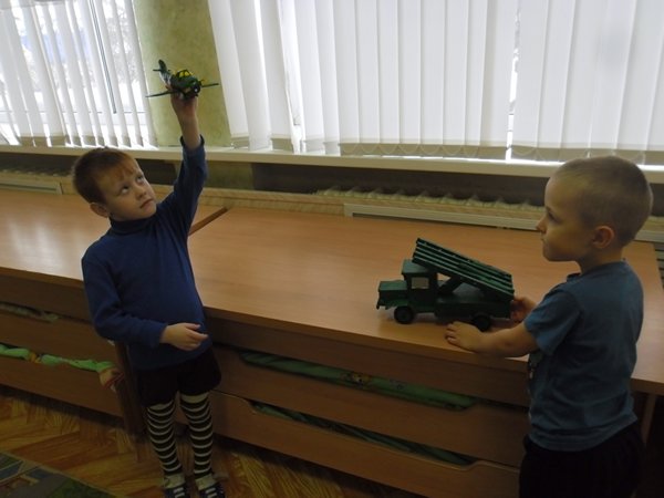 Мальчики строили военные базы для своих игрушечных солдат. Разыгрывали сражения, конечно, победили «наши» войска. Рисовали и лепили самолеты, раскрашивали военную технику, солдат, летчиков, моряков, связистов, парашютистов.