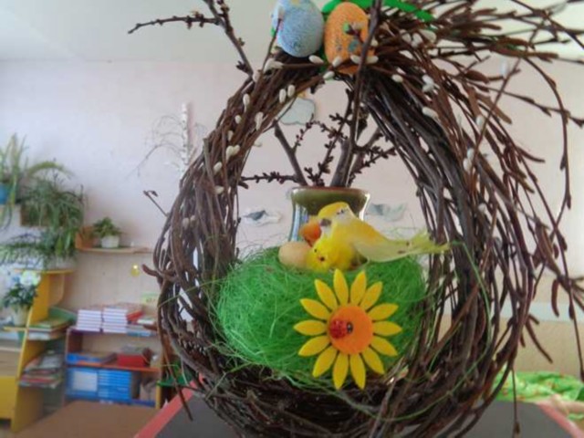 Куличи, яйца и цыплята, пасхальные корзиночки, верба и множество других символов этого древнего христианского праздника присутствовали в групповой комнате.