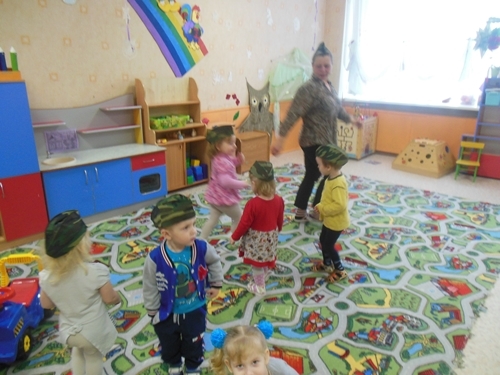 В рамках образовательного события «Готовлюсь Родине служить», дети разновозрастной группы каждый день знакомились с военной профессией, пополняли свои знания о родах войск.С помощью презентации и рассматривания иллюстраций, дети познакомились с оружием и обмундированием богатырей, пополнили свой словарный запас новыми словами (кольчуга, шлем, щит). Малыши попробовали себя в роли богатырей, разучив новый комплекс утренней гимнастики «Богатыри». С большим удовольствием слушали военные песни, учились ходить, как солдаты строем. Играли в игры: пальчиковые «Командир!», в дидактические: «Один – много», «Подбери пуговицы к гимнастерке», «Подбери шлем к кольчуге», «Найди головной убор танкиста», «Кому что нужно?», а также в подвижные: «Вот какие мы ребята», «Летает, плавает, шагает»,«Слушай мою команду», «Самолеты». Дети с увлечением рассматривали разные виды военной техники: самолеты, вертолеты, корабли, танки. Занимались продуктивной деятельностью: рисовали военную технику, украшали богатырский щит, используя крупу - гречку, делали подарок папе. Играли в сюжетно - ролевые игры «Моряки», «Десантники», «Летчики».На итоговом мероприятии наши морячки - самые маленькие участники праздника, исполнили ритмическую гимнастику под песню «Салажата».